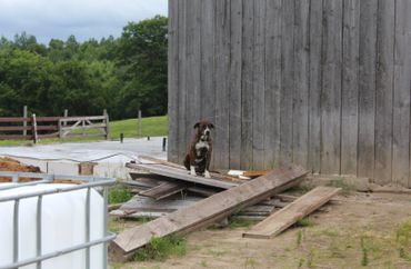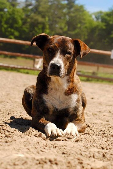 He loves chasing animals in the woods, and that's why he lost one eye trying to catch a porcupine.